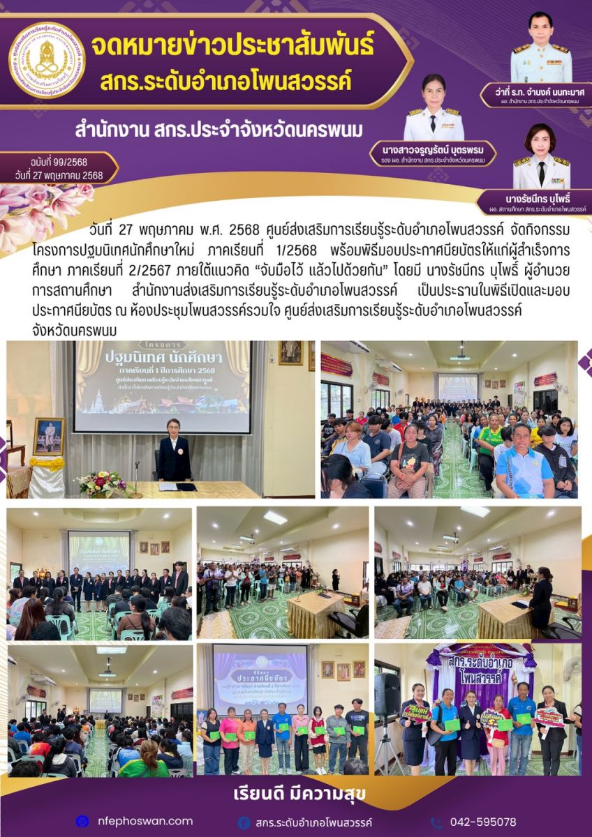 ประเมินระดับการรู้หนังสือของนักศึกษา สกร.ระดับอำเภอโพนสวรรค์