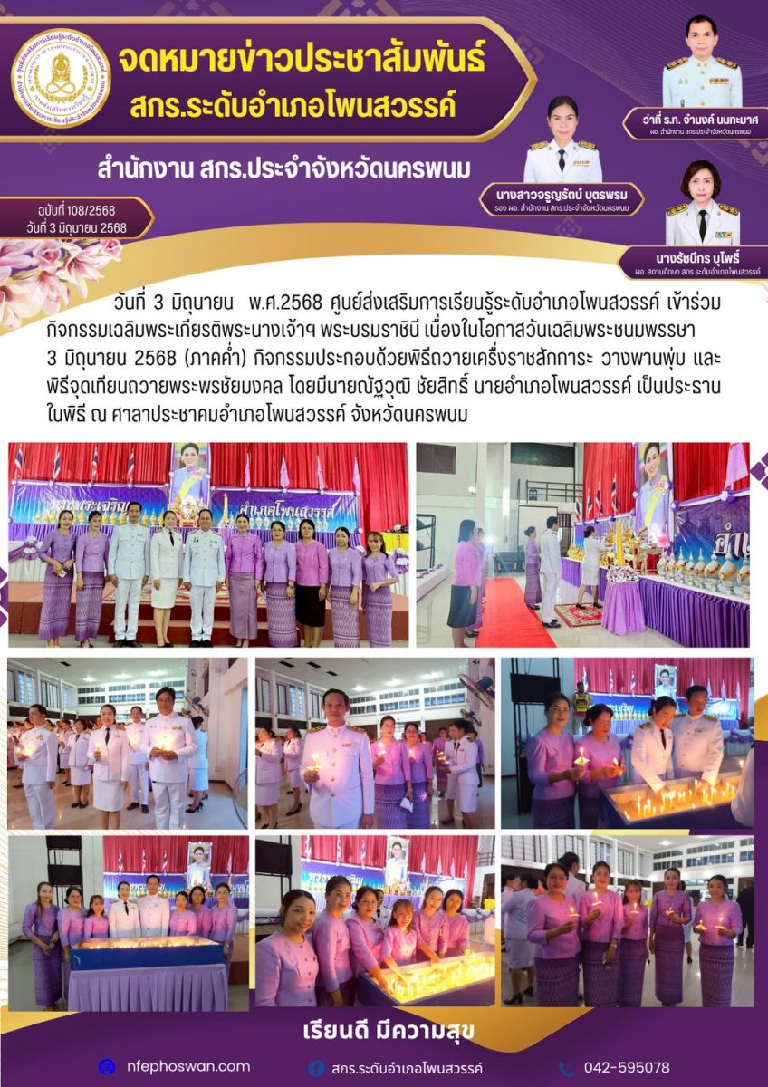กิจกรรมเฉลิมพระเกียรติพระบาทสมเด็จพระนางเจ้าฯ พระบรมราชินี เนื่องในโอกาสวันเฉลิมพระชนมพรรษา