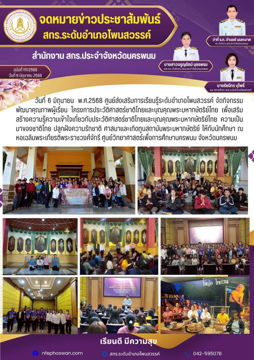 โครงการอบรมเชิงปฏิบัติการบูรณาการประวัติศาสตร์ชาติไทยและบุญคุณของพระมหากษัตริย์ไทยกับการจัดการเรียนรู้ของสถานศึกษาสังกัด สำนักงาน สกร.ประจำจังหวัดนครพนม ประจำปีงบประมาณ 2567