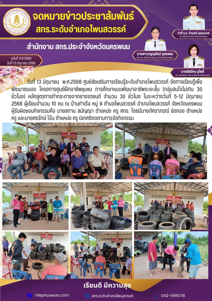โครงการศูนย์ฝึกอาชีพชุมชน การศึกษาแบบพัฒนาอาชีพระยะสั้น (กลุ่มสนใจไม่เกิน 30 ชั่วโมง)