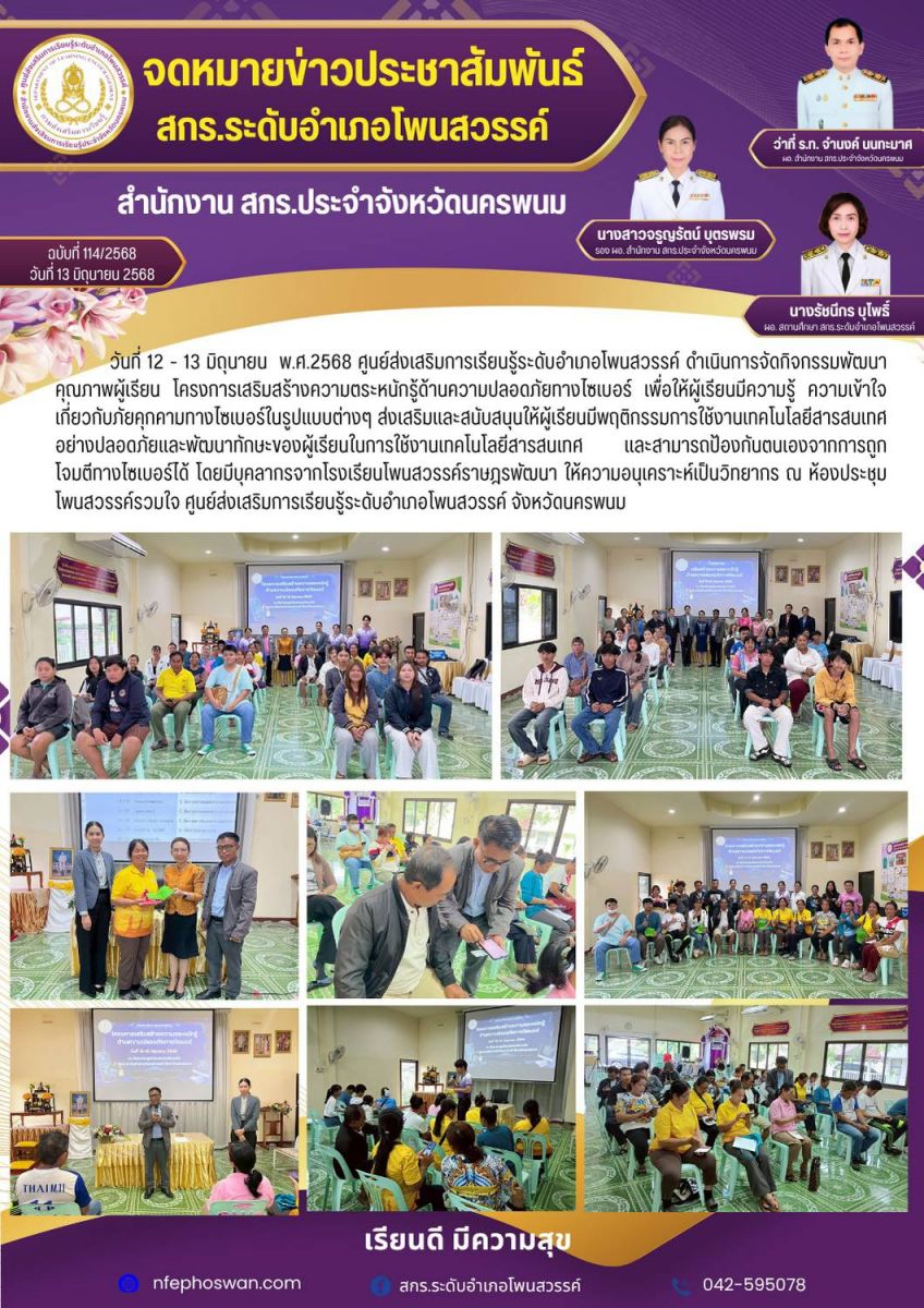 กิจกรรมพัฒนาคุณภาพผู้เรียน โครงการเสริมสร้างความตระหนักรู้ด้านความปลอดภัยทางไซเบอร์