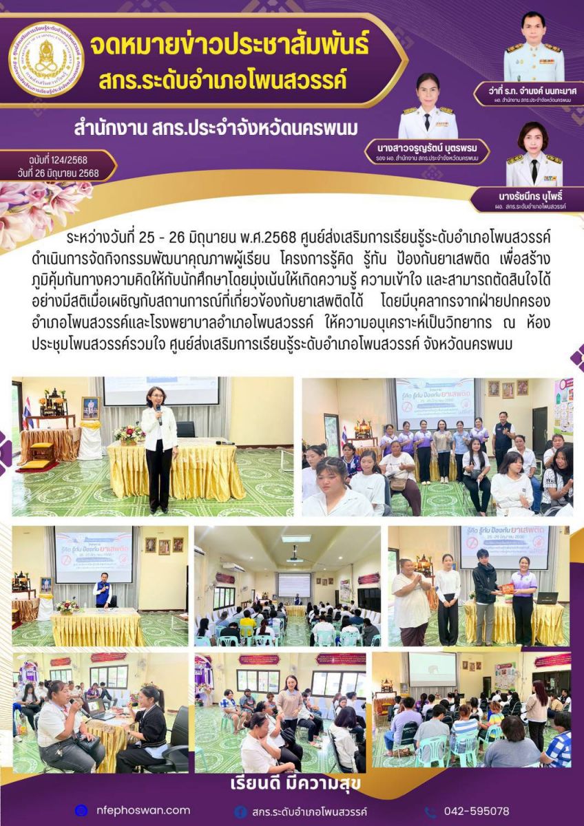 กิจกรรมพัฒนาคุณภาพผู้เรียน โครงการรู้คิด รู้ทัน ป้องกันยาเสพติด