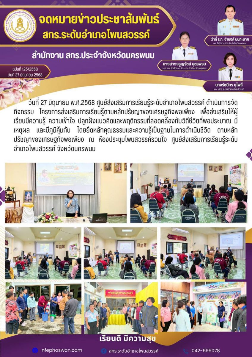 กิจกรรม โครงการส่งเสริมการเรียนรู้ตามหลักปรัชญาของเศรษฐกิจพอเพียง